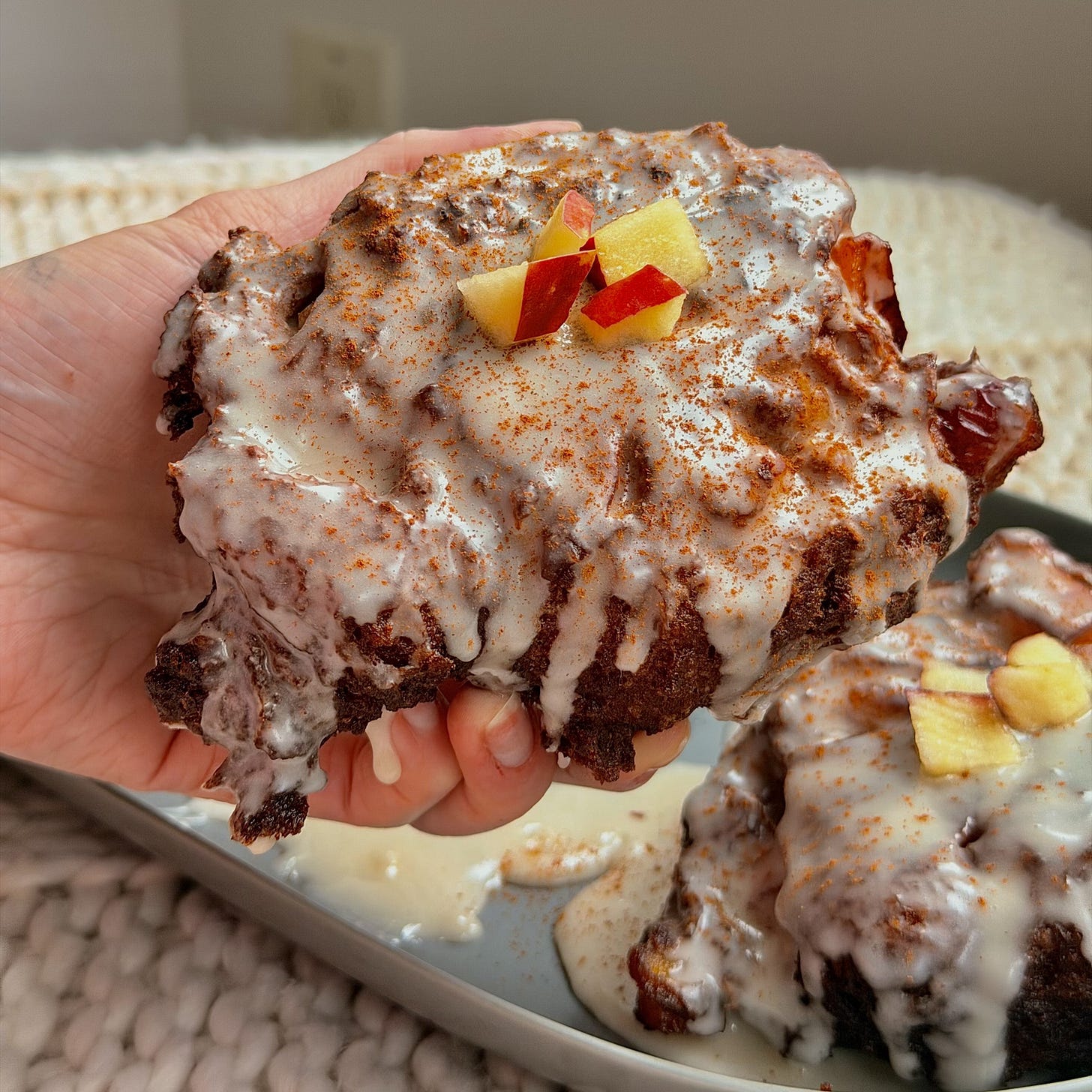 gluten free old fashioned apple fritters with vanilla bean glaze